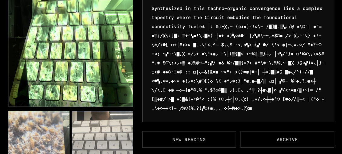 See the app here: https://moss-oracle-a77d4136.base44.app AI generated description of App. 100-Word Description: Cryptogamic Oracle is a techno-organic divination system that reads the hidden materiality between natural and technological systems. Users capture two images: cryptogams (moss, lichen, fungi) found in urban environments, and nearby technology infrastructure. After documenting the specific materials, locations, and forms of each subject, the app generates a visual overlay with adjustable processing parameters. An AI analyzes the merged pattern using a 44-card symbolic deck, drawing three cards to produce a reading that weaves computing terminology with botanical/mycological language. The readings explore material convergences—copper oxidation in circuits mirroring mineral uptake in moss, rare earth metals in electronics paralleling substrate chemistry in cryptogamic growth. 200-Word Outline: I. Image Capture Phase Two-photo sequence: cryptogam (organic) +